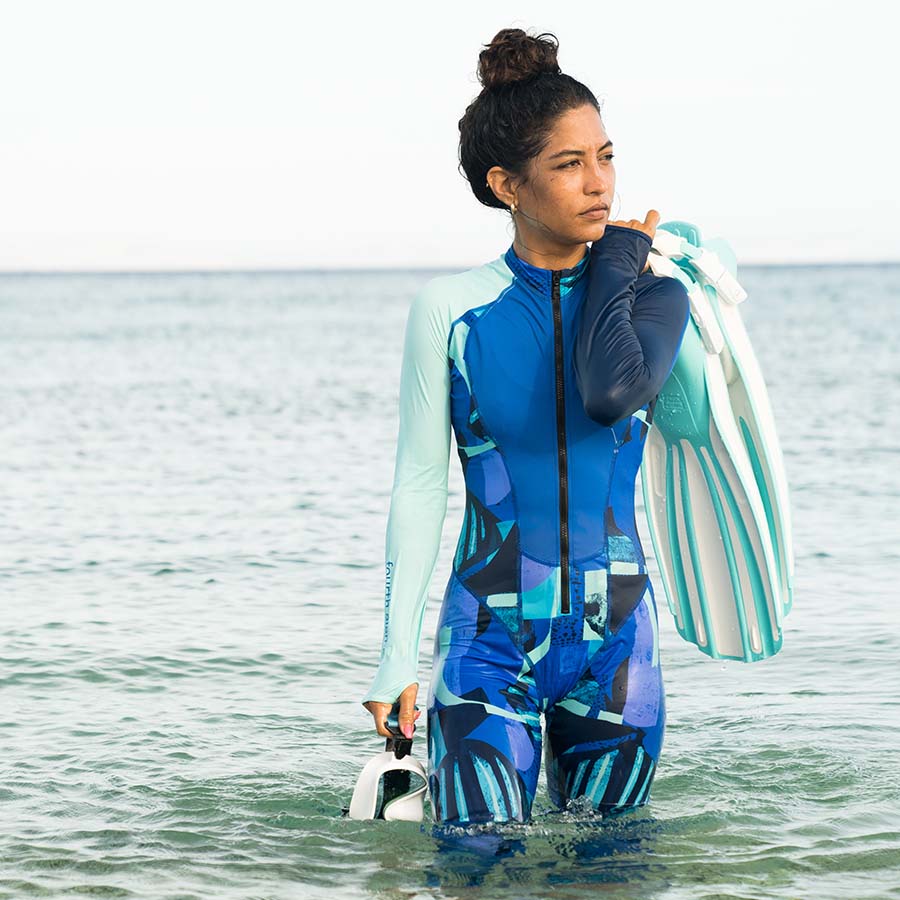 • Geeignet zum alleinigen Tragen oder unter einem Neoprenanzug – reduziert Hautreizungen und erleichtert das Anziehen des Neoprenanzugs